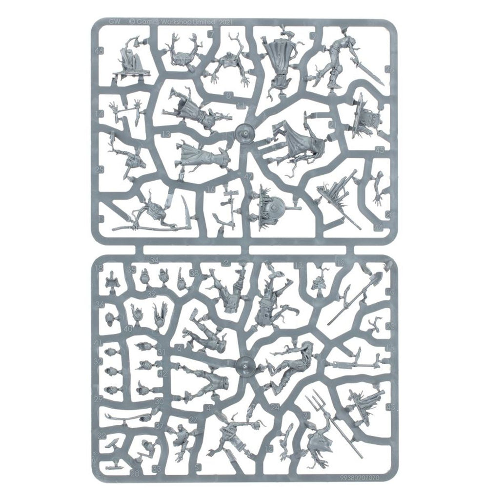 The kit is comprised of 94 plastic components, with which you can assemble 20 Deadwalker Zombies. These models are supplied with 20x Citadel 25mm Round Bases.